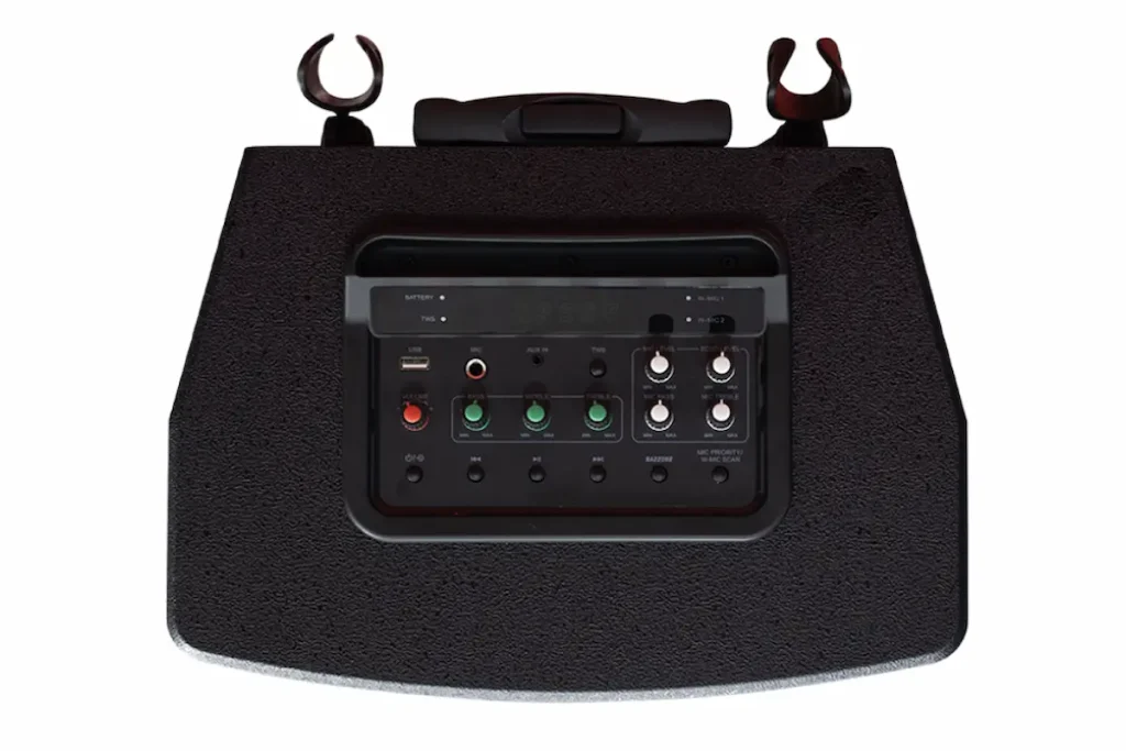 • Control panel lengkap buat atur bass, treble, echo, volume mic