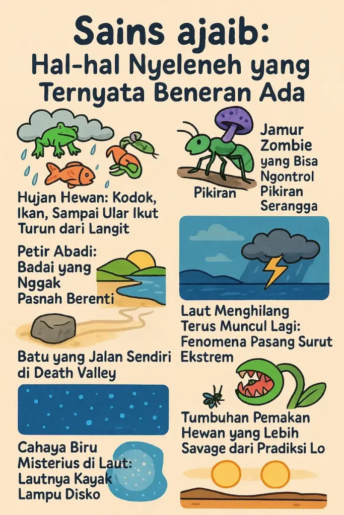 Jadi kalau ada yang bilang sains itu membosankan, suruh aja mereka baca artikel ini. Biar tau dunia ini penuh keajaiban yang nyeleneh, tapi bikin lo mikir: “kok bisa sih?”