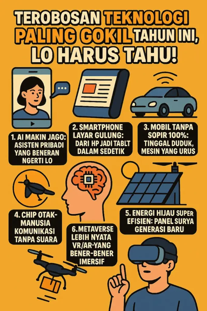 Tahun ini terobosan teknologi berkembang bukan cuma cepat, tapi udah level mind-blowing. Dari AI sampai gadget futuristik, semuanya bikin hidup lo makin gampang dan seru. Yang penting, lo tetep update biar nggak ketinggalan kereta.